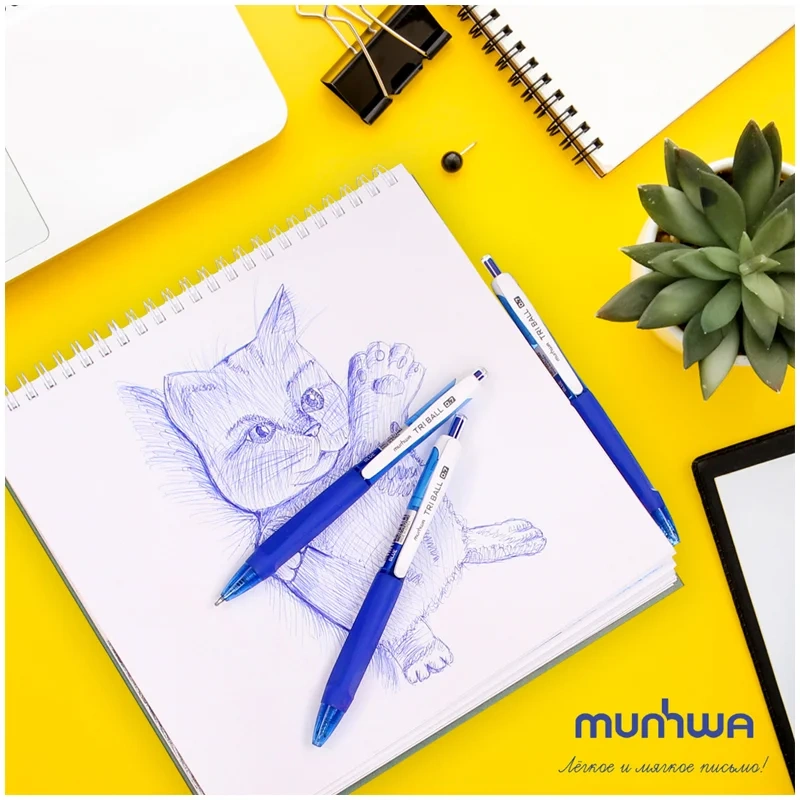 Эргономичная шариковая автоматическая ручка MunHwa Triball подходит для учебы, работы и офиса, для ведения документооборота, заполнения ежедневника и повседневного использования.