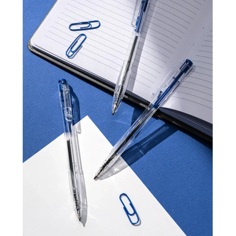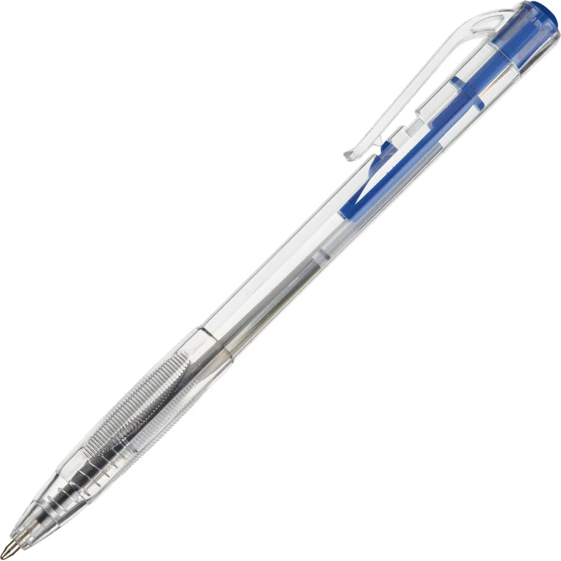 Шариковая ручка автоматическая Attache синяя, 0.7мм, прозрачный корпус