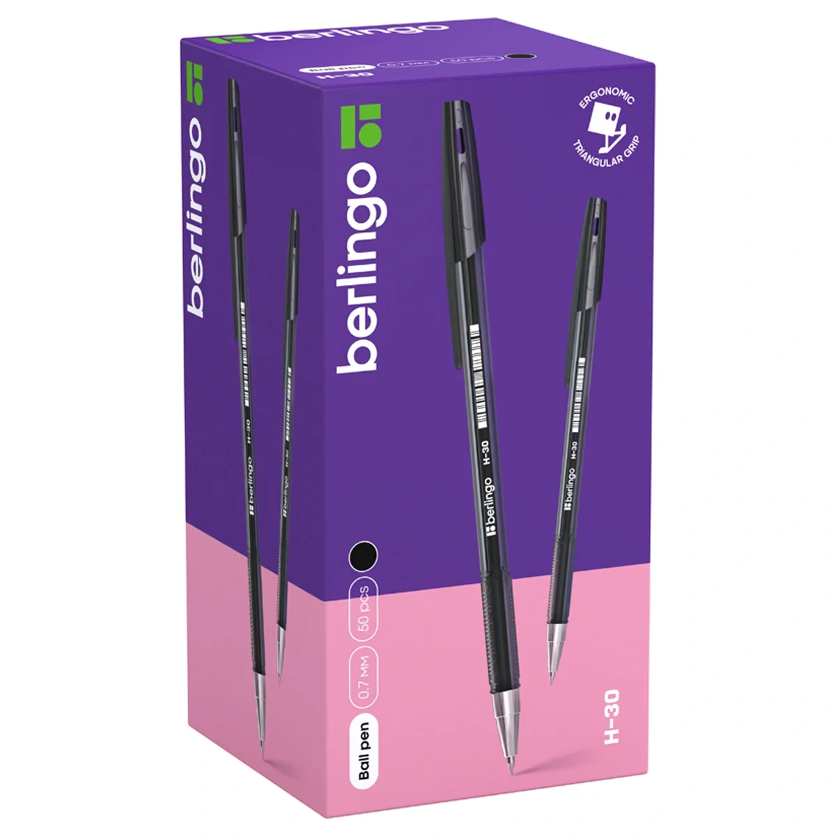 Лаконичная шестигранная шариковая ручка Berlingo H-30 с вентилируемым колпачком и пластиковым клипом – это простой, но стильный аксессуар для работы или учёбы. Диаметр пишущего узла составляет 0,7 мм, благодаря чему получается тонкая, аккуратная линия. Толщина линии письма 0,5 мм, а длина линии письма – 700 м. Корпус соответствует цвету чернил. Для большего удобства при письме в зоне захвата ручки, которая имеет трёхгранную форму, есть рифление. Качественные чернила на масляной основе обеспечивают четкое и ровное письмо. Полупрозрачный корпус ручки позволяет визуально контролировать расход чернил. Цвет чернил – чёрный. Упакованы в мини-дисплей из мелованного картона по 50 штук.