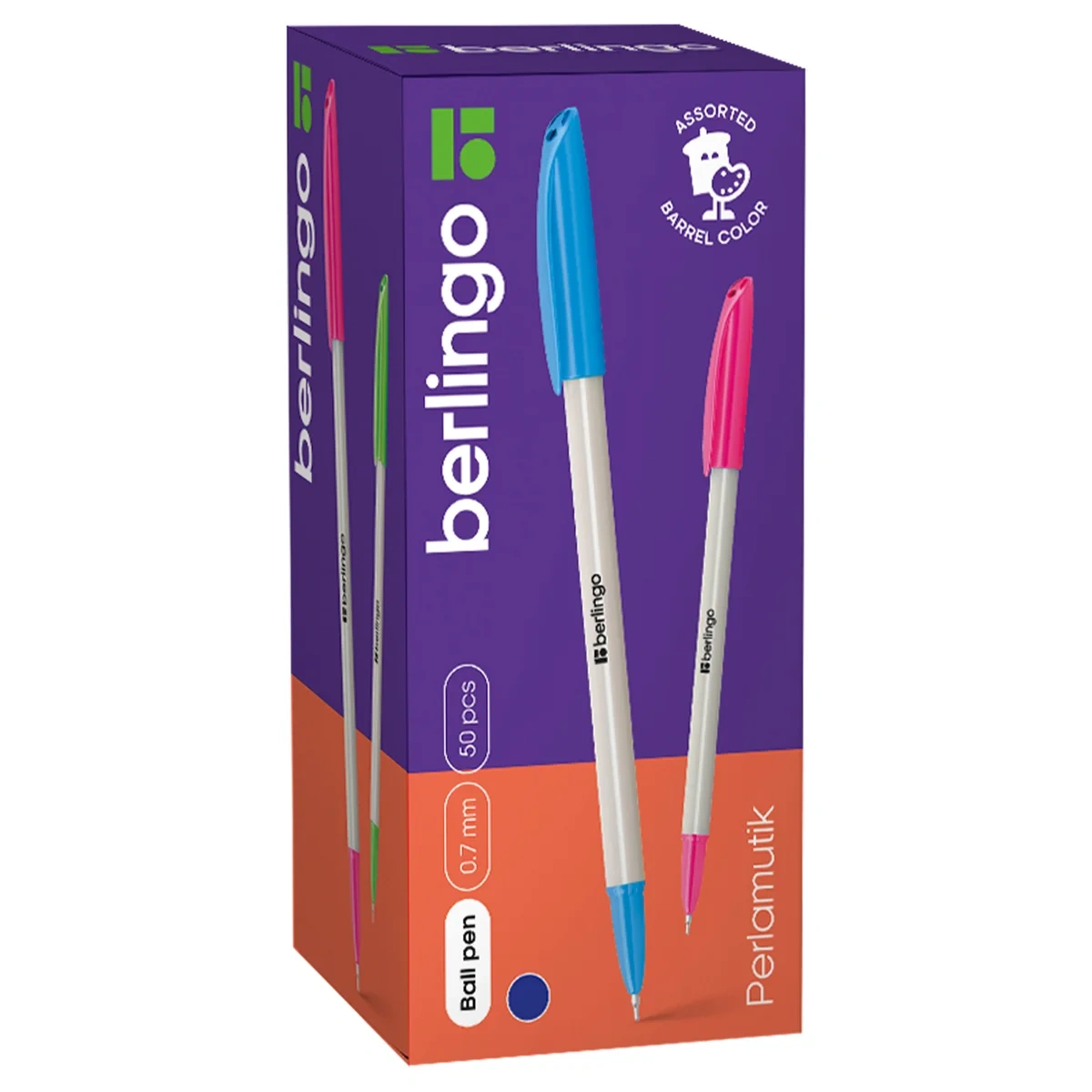 Одноразовую шариковую ручку Berlingo Perlamutik будет точно легко найти на столе или в ящике благодаря контрастному сочетанию эффекта нежного перламутра и ярких цветов в дизайне корпуса и вентилируемого колпачка. Удобный пластиковый клип поможет закрепить ручку на планшете или ежедневнике. Специальный пишущий узел и чернила пониженной вязкости обеспечивают супермягкое письмо. Диаметр пишущего узла составляет 0,7 мм, благодаря чему ручка прекрасно подходит для любого стиля письма.- Цвет чернил: синий;- Толщина линии письма: 0,5 мм;- Длина письма: 950 м;- Цвет корпуса: микс из 3-х цветов с эффектом перламутра;- Количество штук в упаковке: 50;- Тип упаковки: картонная коробка-дисплей
