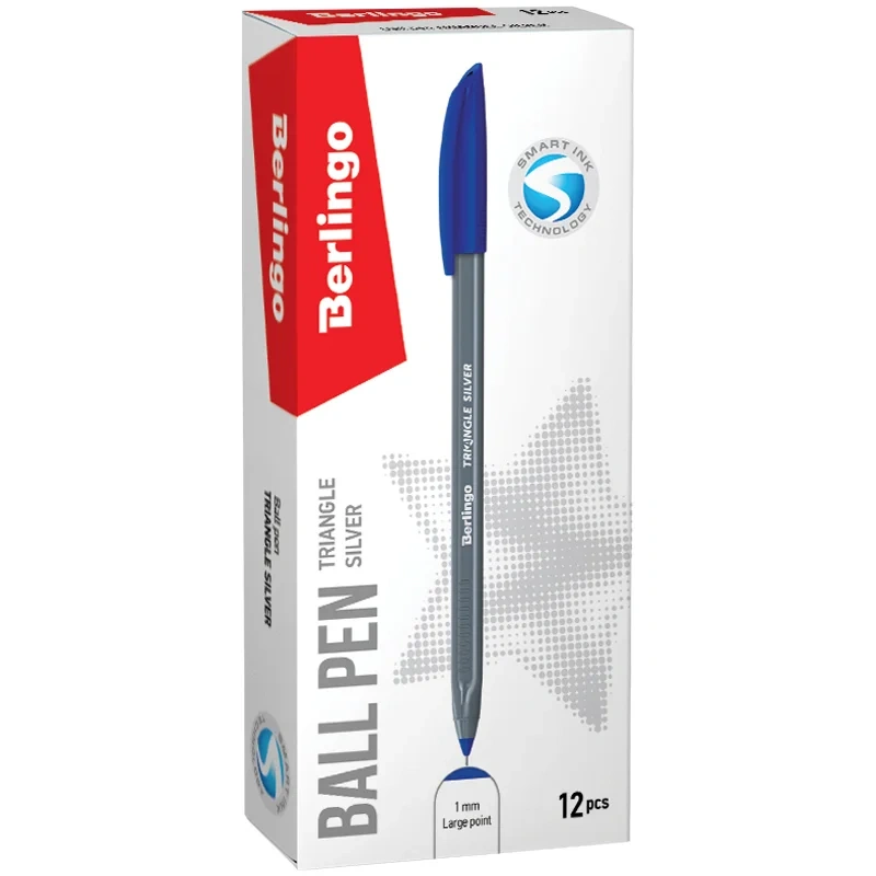 Шариковая ручка Berlingo Triangle Silver синяя, 1мм,серый корпус, одноразовая