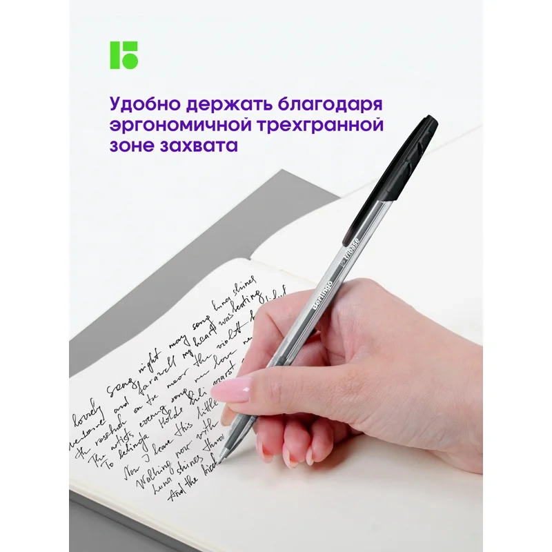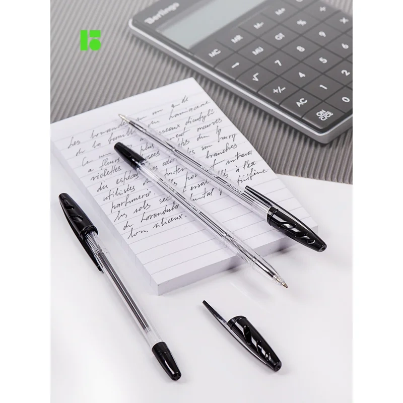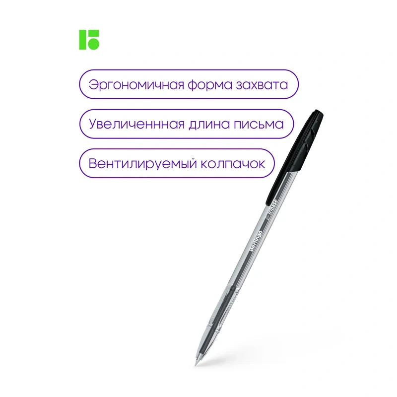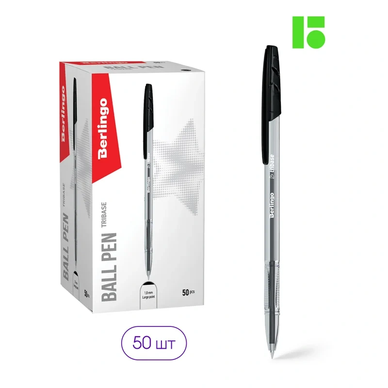 Универсальная шариковая ручка Berlingo Tribase в прозрачном корпусе с вентилируемым колпачком, который обеспечивает безопасность при использовании детьми, станет простым, но незаменимым помощником в работе и учёбе. Пластиковый клип позволит разместить ручку где удобно. Эргономичная трёхгранная зона захвата с рифлением препятствует скольжению пальцев. Цвет деталей соответствует цвету чернил. Качественные чернила обеспечивают чёткое и ровное письмо. Диаметр пишущего узла составляет 1 мм, благодаря чему ручка идеально подходит для быстрого стиля письма. Увеличенная длина письма ручки достигает 1,2 км!- Цвет чернил: чёрный;- Толщина линии письма: 0,8 мм;- Длина письма: 950 м;- Цвет корпуса: прозрачный;- Количество штук в упаковке: 50;- Тип упаковки: мини-дисплей из мелованного картона