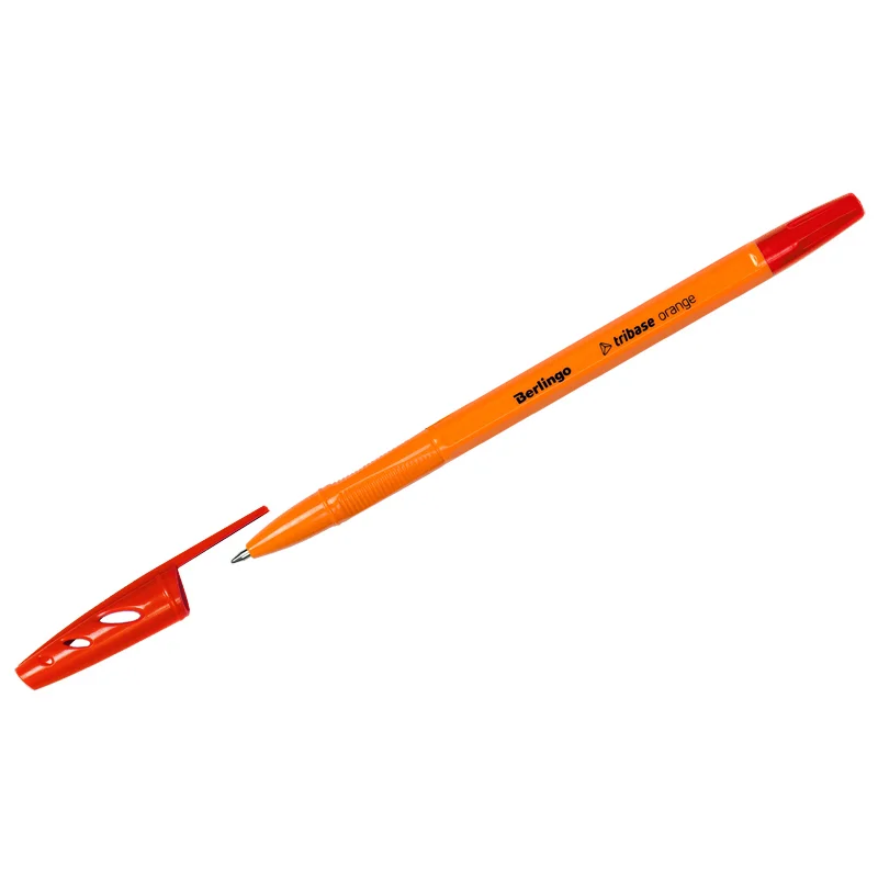 Шариковая ручка Berlingo Tribase Orange с вентилируемым колпачком, который обеспечивает безопасность при использовании детьми, выполнена в сочных, тёплых цветах, которые помогут создать отличное настроение на работе или учёбе. Пластиковый клип позволит разместить ручку где удобно. Эргономичная трёхгранная зона захвата с рифлением препятствует скольжению пальцев. Качественные чернила обеспечивают чёткое и ровное письмо. Цвет деталей соответствует цвету чернил. Диаметр пишущего узла составляет 0,7 мм, благодаря чему ручка прекрасно подходит для любого стиля письма. Увеличенная длина письма ручки достигает 1,2 км!- Цвет чернил: красный;- Толщина линии письма: 0,5 мм;- Длина письма: 1200 м;- Цвет корпуса: оранжевый;- Количество штук в упаковке: 50;- Тип упаковки: мини-дисплей из мелованного картона