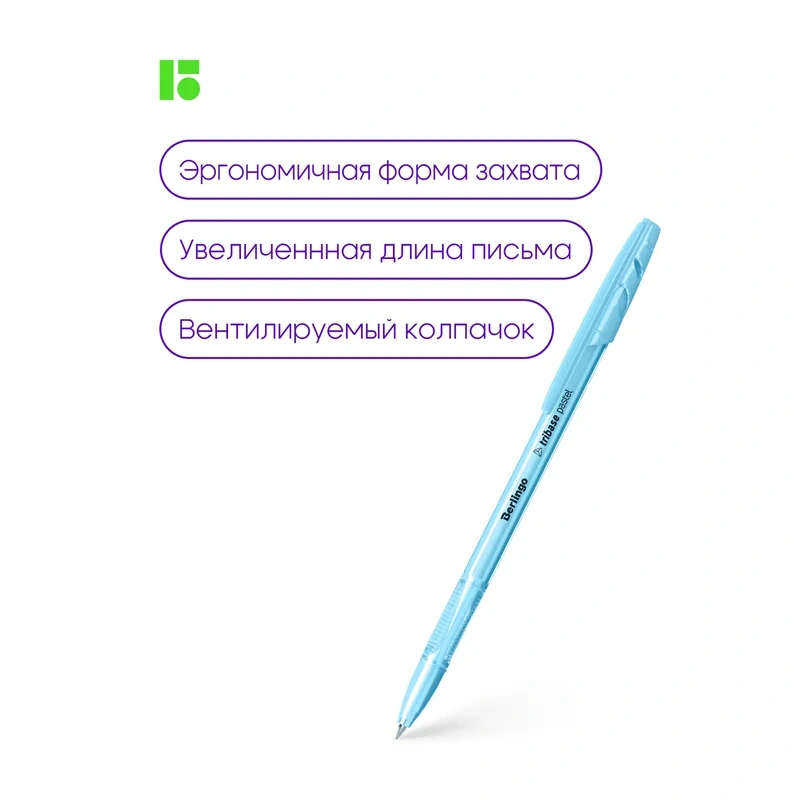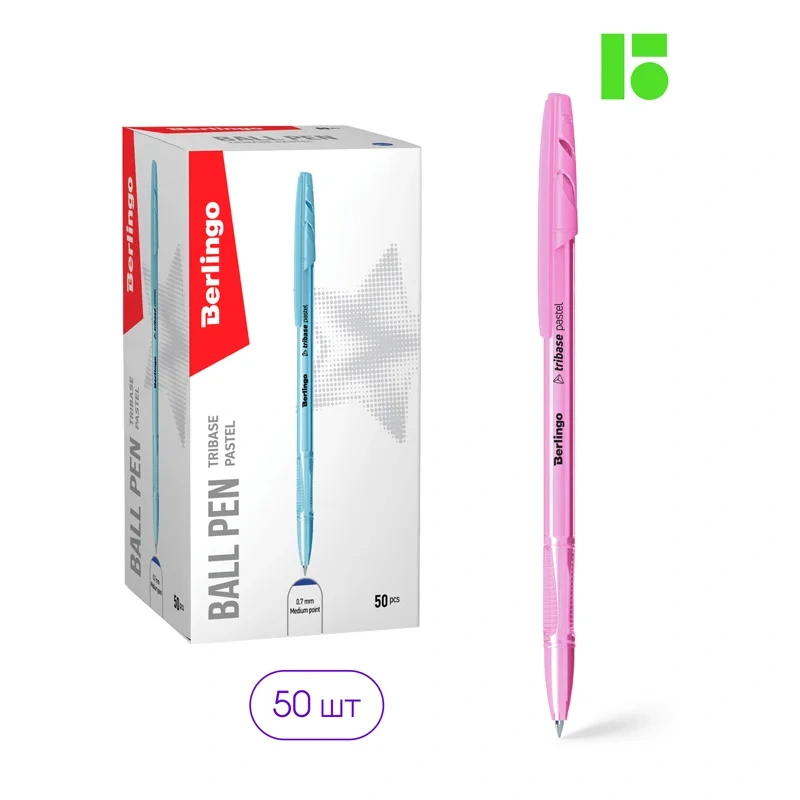 Шариковая ручка Berlingo Tribase Pastel в нежных, пастельных тонах с вентилируемым колпачком, который обеспечивает безопасность при использовании детьми, это стильный аксессуар для работы или учёбы. Пластиковый клип позволит разместить ручку где удобно. Эргономичная трёхгранная зона захвата с рифлением препятствует скольжению пальцев. Качественные чернила обеспечивают чёткое и ровное письмо. Диаметр пишущего узла составляет 0,7 мм, благодаря чему ручка прекрасно подходит для любого стиля письма. Увеличенная длина письма ручки достигает 1,2 км!- Цвет чернил: синий;- Толщина линии письма: 0,5 мм;- Длина письма: 1200 м;- Цвет корпуса: микс из 5-ти цветов;- Количество штук в упаковке: 50;- Тип упаковки: мини-дисплей из мелованного картона