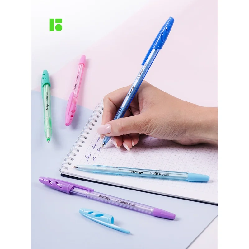 Шариковая ручка Berlingo Tribase Pastel синяя, 0.7мм, копус ассорти