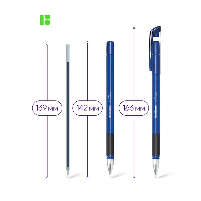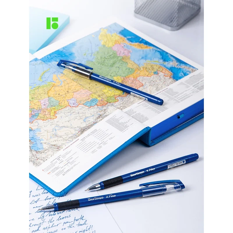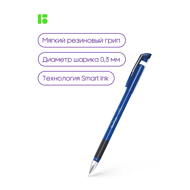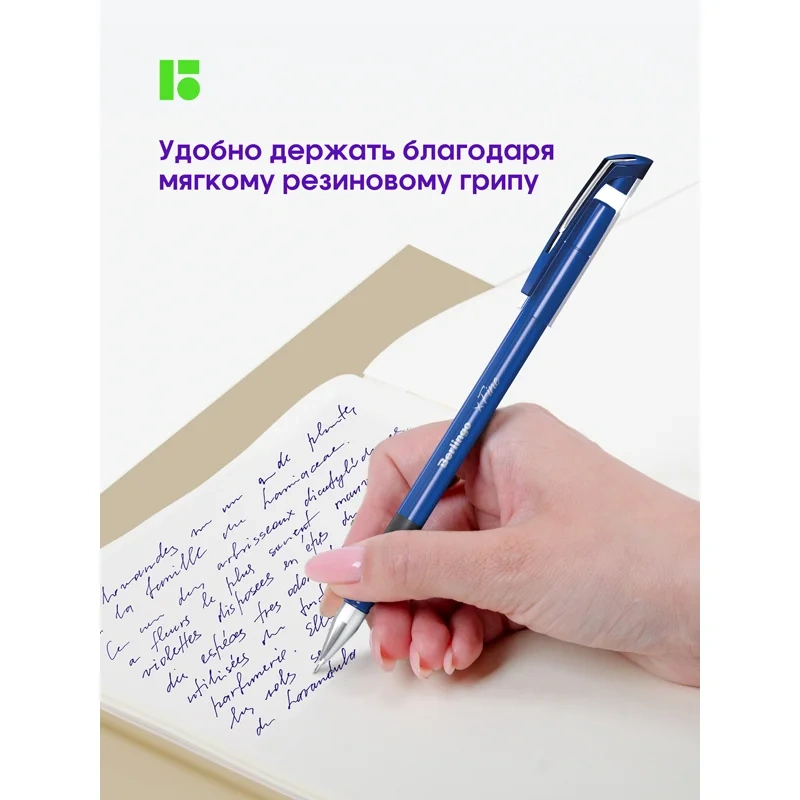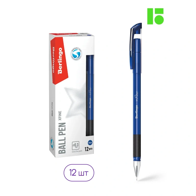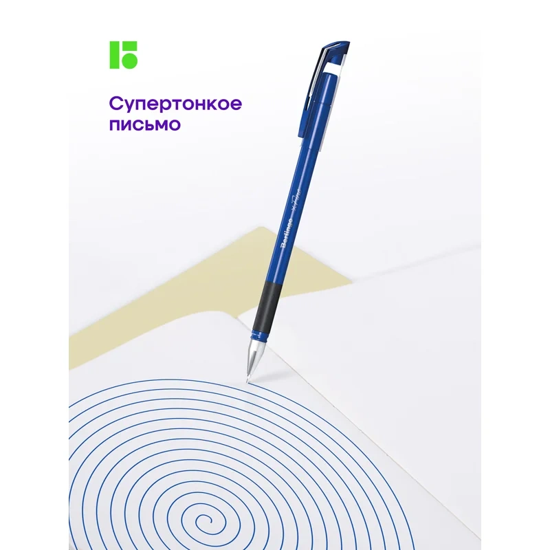 Шариковая ручка Berlingo xFine, оснащенная вентилируемым колпачком и пластиковым клипом. Корпус ручки синего цвета и соответствует цвету чернил. Резиновый эргономичный упор для пальцев предотвращает усталость и скольжение при письме. Диаметр пишущего узла составляет 0,3 мм, благодаря чему ручка прекрасно подходит для любого стиля письма. Толщина линии письма – 0,2 мм, а длина – 1000 м.