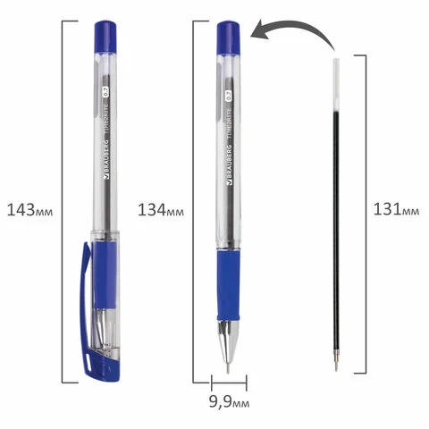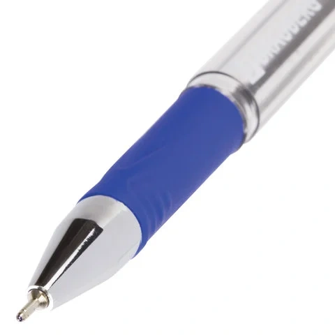 Шариковая ручка с прозрачным корпусом и резиновым грипом для удобства письма, исключающим скольжение пальцев. Ручка снабжена сменным стержнем 131 мм, что позволяет увеличить срок службы. Чернила ультрапониженной вязкости синего цвета обеспечивают мягкое и комфортное письмо. Надежный пишущий узел диаметром 0,7 мм создает тонкую линию, равную 0,35 мм. Стильный корпус соответствует офисному стилю.