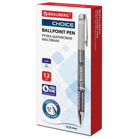 Шариковая ручка Brauberg Choice синяя, 0.7мм, масляная основа, корпус с печатью