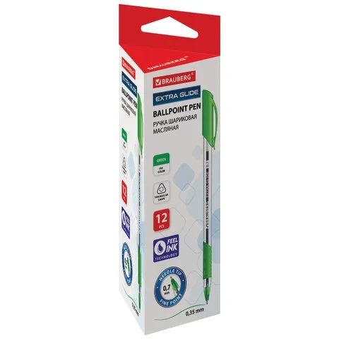 Шариковая ручка Brauberg Extra Glide GT зеленая, 0.7мм, прозрачный корпус, одноразовая