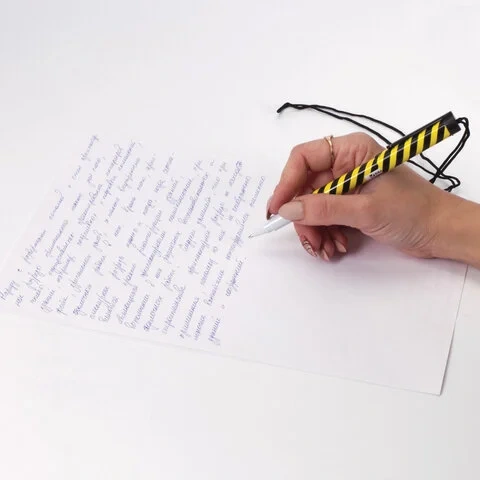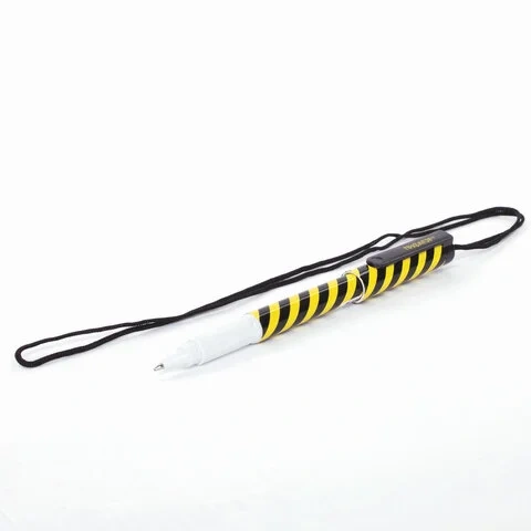 Имеет круглый корпус и стандартный наконечник. Длина сменного стержня составляет 115 мм. Цвет чернил - синий. Диаметр пишущего узла, равный 0,7 мм, создает линию письма, равную 0,35 мм. Длина шнурка - 42 см. Поставляется в нескольких вариантах цвета (без возможности выбора). Упакована в прозрачный пластиковый стакан.