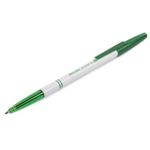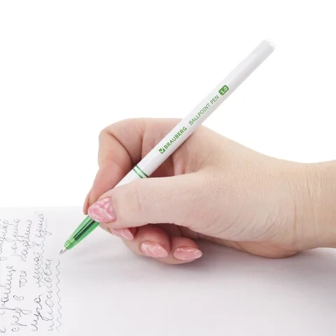 Шариковая ручка Brauberg Офисная зеленая, 0.5мм, белый корпус