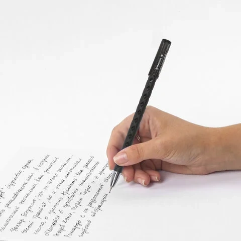 Шариковая ручка масляная имеет необычный перфорированный корпус черного цвета. Снабжена чернилами на масляной основе, обеспечивающими непревзойденно легкое и мягкое письмо. Еще одним преимуществом данной модели является наличие сменного стержня, что делает её экономически привлекательной. Длина стержня составляет 130 мм с игольчатым наконечником, обеспечивающим равномерный расход чернил. Диаметр пишущего узла 0,7 мм создает тонкую линию письма, равную 0,35 мм. Цвет чернил - черный.