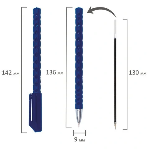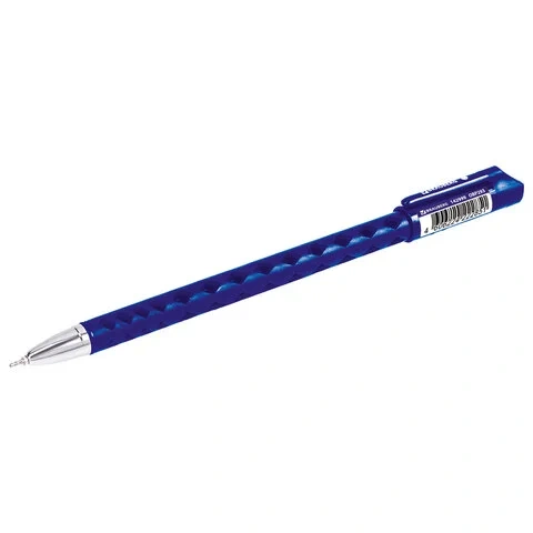 Шариковая ручка масляная имеет необычный перфорированный корпус синего цвета. Снабжена чернилами на масляной основе, обеспечивающими непревзойденно легкое и мягкое письмо. Еще одним преимуществом данной модели является наличие сменного стержня, что делает её экономически привлекательной. Длина стержня составляет 130 мм с игольчатым наконечником, обеспечивающим равномерный расход чернил. Диаметр пишущего узла 0,7 мм создает тонкую линию письма, равную 0,35 мм. Цвет чернил - синий.