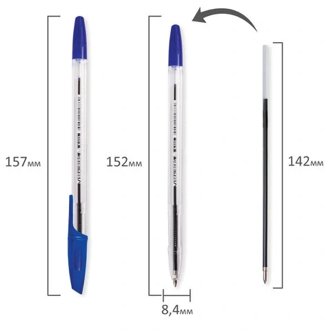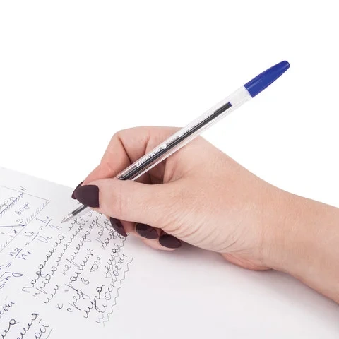 Шарикова ручка с прозрачным корпусом, вентилируемым колпачком и удобной трёхгранной зоной захвата с рифлением, препятствующим скольжению пальцев при письме. Ручка снабжена сменным стерженем 142 мм, что позволяет увеличить срок службы. Диаметр пишущего узла 0,7 мм создает тонкую линию письма, равную 0,35 мм.