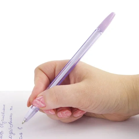 Шариковая ручка с прозрачным тонированным корпусом пастельных цветов ассорти и рифлением в области захвата для удобства при письме. Сменный стержень длиной 142 мм. Диаметр пишущего узла 0,7 мм создает тонкую линию письма 0,35 мм. Цвет чернил - синий. Оригинальный дизайн ручки и эргономичный корпус с комфортной зоной захвата сделает письмо легким и точным.