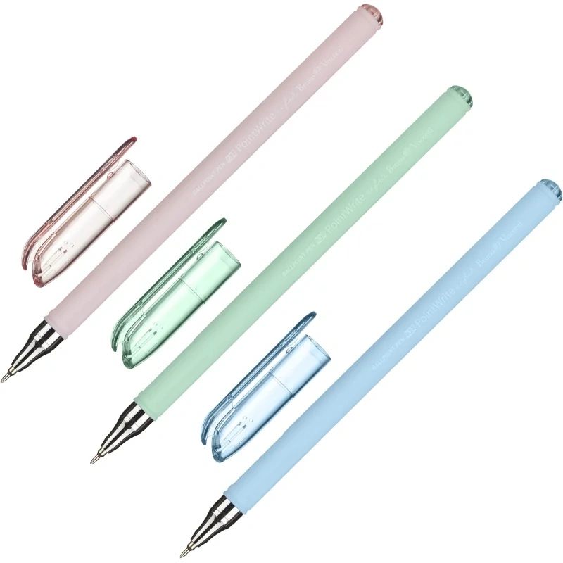 Ручка шариковая неавтоматическая PointWrite Zefir. Корпус ручки выполнен из прочного пластика с текстурированной поверхностью, специальное покрытие: корпус Silk touch. Цвет корпуса: голубой, розовый, зеленый. Форма корпуса — круглая. Длина сменного стержня: 140 мм. Толщина линии письма: 0,38 мм. Диаметр пишущего узла 0,38 мм. Форма наконечника — полуигольчатая. Пигментные чернила Dokumental синего цвета. Ручка имеет возможность замены стержня, что означает многократное использование. Расходные материалы для данной ручки не представлены в ассортименте производителя и в ассортименте компании Комус.