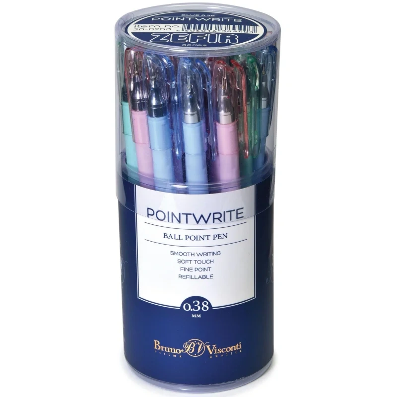 Шариковая ручка Bruno Visconti PointWrite Zefir синяя, 0.38мм, корпус ассорти