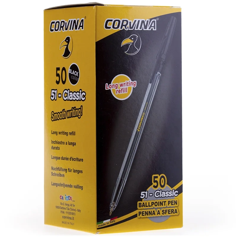 Шариковая ручка Corvina 51 Classic черная, 1мм, прозрачный корпус