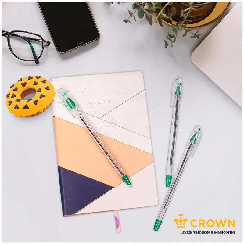 Шариковая зелёная ручка Crown Oil Jell – это функциональный инструмент для ежедневного использования. Диаметр пишущего узла 0,7 мм, благодаря чему ручка подойдет для любого стиля письма. Цвет чернил - зелёный. Она подойдет для заполнения бланков, ведения дневника или скетчинга. Рифленая зона захвата снижает давление на пальцы рук при письме. Чернила на масляной основе пониженной вязкости обеспечивают мягкое ровное письмо и уверенное скольжение по бумаге. Легкий прозрачный корпус достаточно лаконичен по форме и весьма удобен при письме. В упаковке 12 штук.