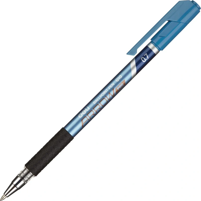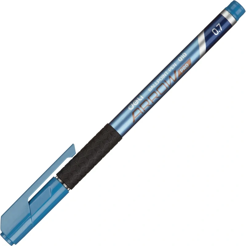 Ручка шариковая синяя Deli Arrow с колпачком и со стандартным типом пишущего узла. Шариковая ручка в пластиковом корпусе с удобной для письма мягкой зоной захвата создаст дополнительный комфорт при длительном использовании. Цвет деталей корпуса повторяет цвет чернил. В производстве ручек используются чернила пониженной вязкости, гарантирующие необыкновенно мягкое и четкое письмо на любой бумаге. Диаметр пишущего узла составляет 0,7 мм, благодаря чему получается тонкая, аккуратная линия. Толщина линии письма 0.35 мм. Такая ручка будет уместна на любом учебном или офисном столе. Размер ручки 146×10×14 мм.