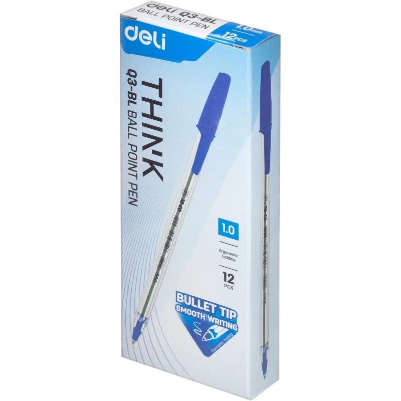 Ручка шариковая Deli Think с диаметром пишущего узла 1 мм. Четкие линии чернил не размазываются при нечаянном соприкосновении рукой. Съемный защитный колпачок оснащен пластиковой клипсой. Удобный клип позволяет фиксировать ручку на ежедневниках, блокнотах и карманах одежды. Эргономичная ручка удобно лежит в руке и не вызывает дискомфорта даже при длительно использовании. В производстве ручек используются чернила пониженной вязкости, гарантирующие необыкновенно мягкое и четкое письмо на любой бумаге. Высококачественные чернила позволяют увеличить продолжительность письма и сократить их расход. Ручка пишет очень тонко и аккуратно.