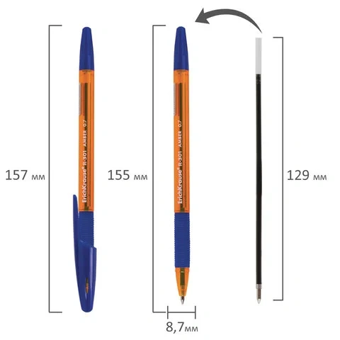 Шариковая ручка Erich Krause R-301 Amber синяя, 0.7мм, 39530