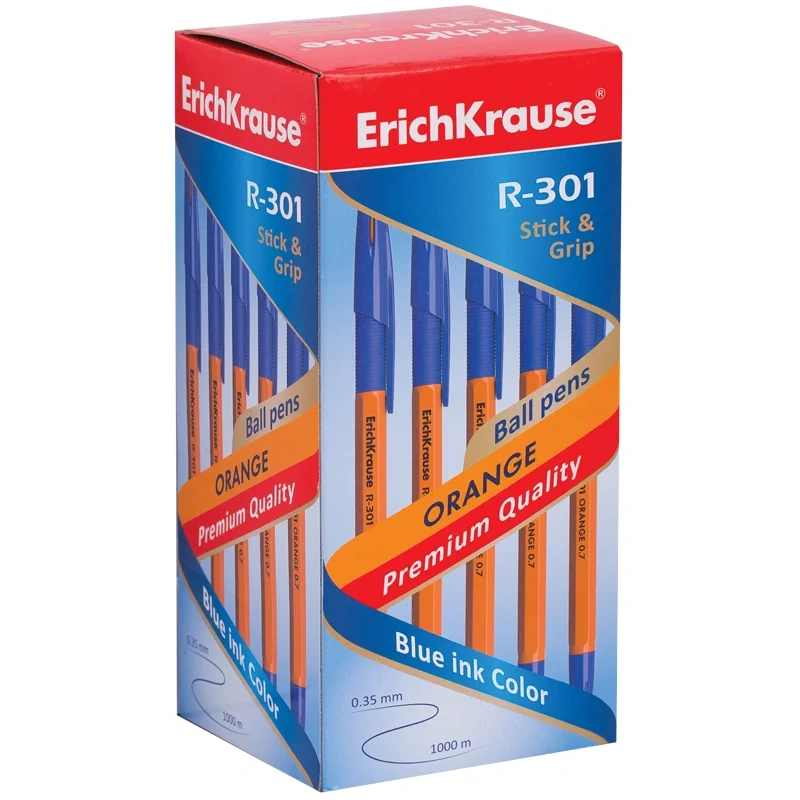 Шариковая ручка Erich Krause R-301 Orange Stick&Grip синяя, 0.7мм, 39531