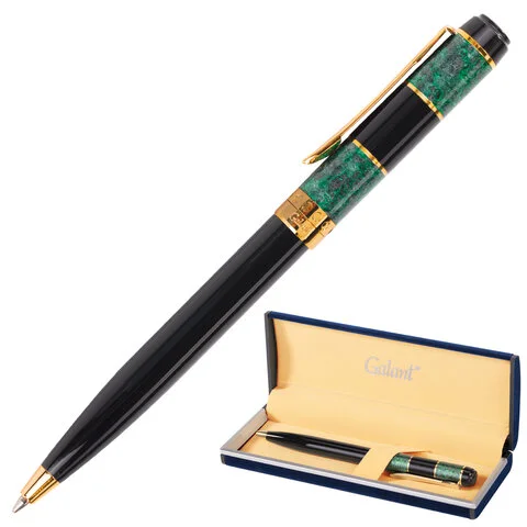 Шариковые ручки класса Люкс Galant Granit Green синяя, 0.7мм, черный/золотой корпус