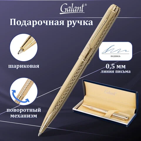Шариковые ручки класса Люкс Galant Graven Gold синяя, 0.7мм, золотой корпус