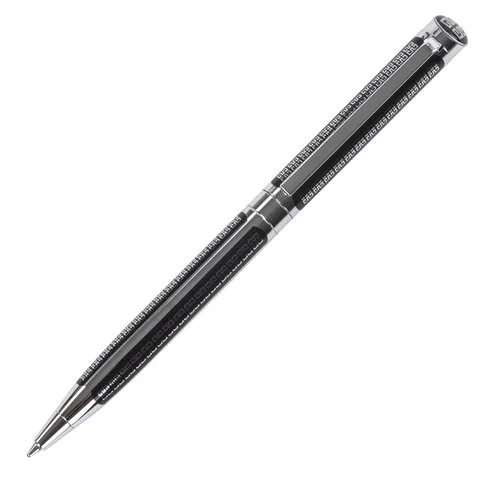 Корпус ручки черного цвета в классическом стиле выполнен из латуни и украшен декоративным узором. Синий цвет чернил, длина стержня составляет 98 мм, а диаметр пишущего узла - 0,7 мм. Поставляется в индивидуальном подарочном футляре.