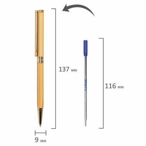 Шариковые ручки класса Люкс Galant Stiletto Gold синяя, 0.7мм, золотой корпус