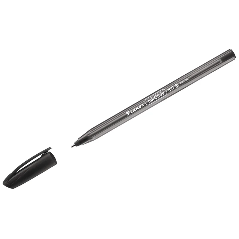 Шариковая ручка Luxor InkGlide 100 Icy черная, 0.7мм, черный корпус, одноразовая
