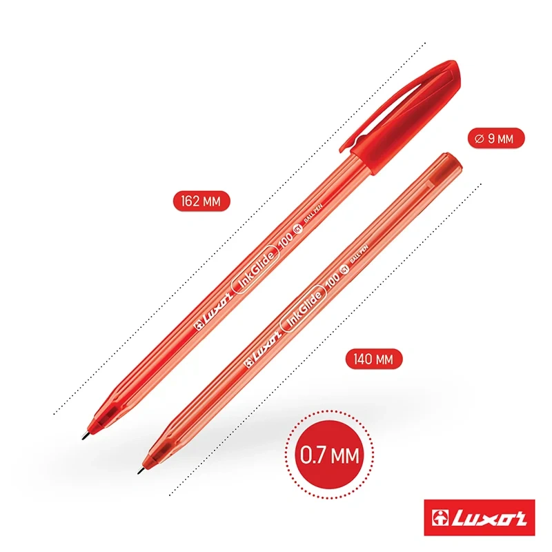 Шариковая ручка Luxor InkGlide 100 Icy красная, 0.7мм, красный корпус, одноразовая