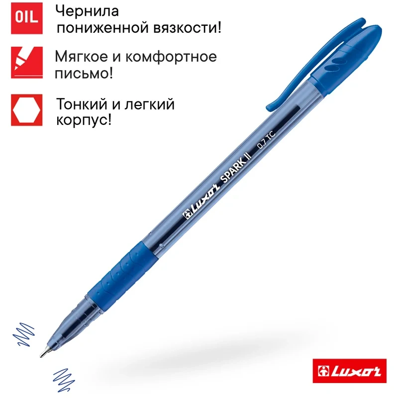 Шариковая ручка Luxor Spark II синяя, 0.7мм, прозрачный корпус