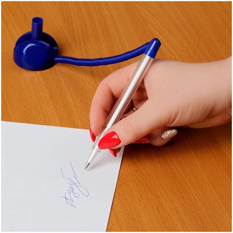 Настольная шариковая ручка OfficeSpace Reception на подставке – это идеальный инструмент для работы. Подставка с регулируемым углом наклона позволяет использовать ручку в любом положении. Подставка фиксируется на ровной поверхности с помощью клейкого основания. Отлично подходит для мест с высокой проходимостью: стойки регистрации, банки, ресепшен, офисные помещения. Диаметр пишущего узла 0,7 мм, благодаря чему ручка подходит для любого стиля письма.