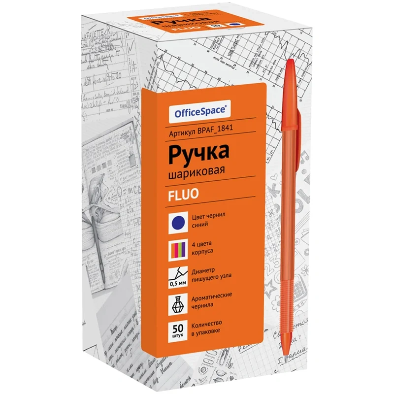 Шариковая ручка со сменным стержнем OfficeSpace Fluo – необычный инструмент для традиционных записей. Внутри пластикового корпуса – ароматические чернила. На ручке есть колпачок с клипом – можно закрепить её на одежде или тетради. Цвет чернил – синий. Оставляет на бумаге тонкую и изящную линию благодаря диаметру пишушего узла 0,5 мм.