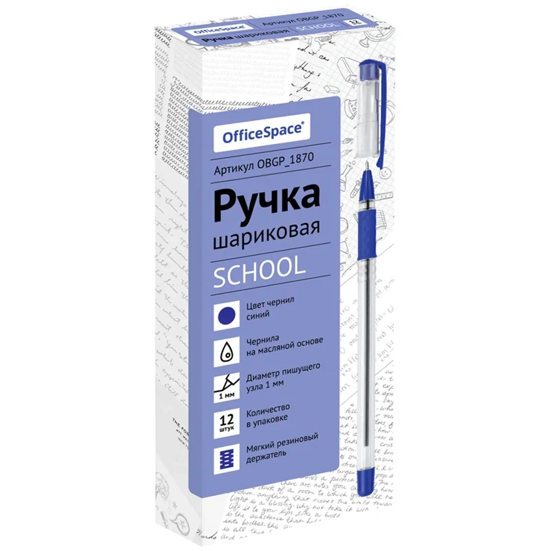 Шариковая ручка OfficeSpace School – идеальный выбор для школьных записей. Внутри пластикового корпуса – синие чернила на масляной основ, которые обеспечивают мягкое письмо. На прозрачном колпачке ручки есть клип – можно закрепить её на одежде или тетради. Специальная резиновая накладка грип-зоны препятствует выскальзыванию ручки из пальцев. Благодаря диаметру пишущего узла 1 мм не требует нажима при письме, отчего рука не устает.