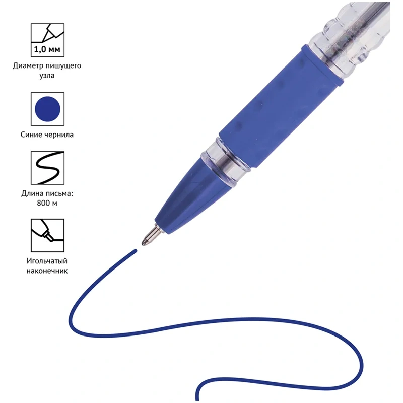 Шариковая ручка Officespace School синяя, 1.0мм, прозрачный корпус