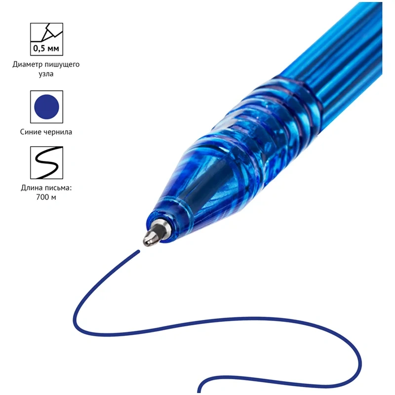 Шариковая ручка Officespace Tone синяя, 0.5мм, синий корпус