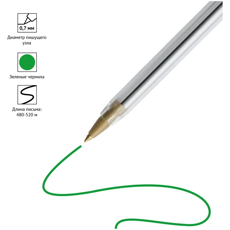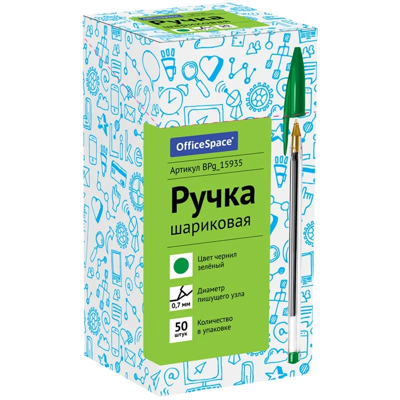 Шариковая ручка Officespace зеленая, 0.7мм, прозрачный корпус
