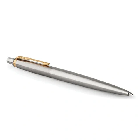 Шариковая ручка класса люкс Parker Jotter имеет корпус из нержавеющей стали. Детали отделки — сталь. Оснащена кнопочным механизмом. Комплектуется индивидуальным футляром и стержнем с пастой синего цвета. Диаметр шарика -1,0 мм. Толщина линии письма — 0,8 мм.