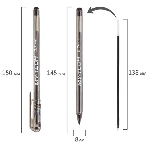 Шариковая ручка My Tech с игольчатым стержнем изготовлена из высокопрочного прозрачного тонированного полистирола. Рельефный держатель создан для удобства письма. Новое поколение чернил пониженной вязкости (Extra Low Viscosity) в сочетании с высокоточным Швейцарским пишущим узлом из