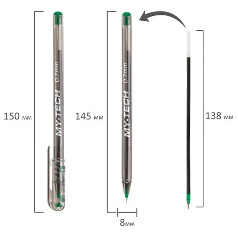 Шариковая ручка Pensan My-Tech зеленая, 0.7мм, тонированный корпус