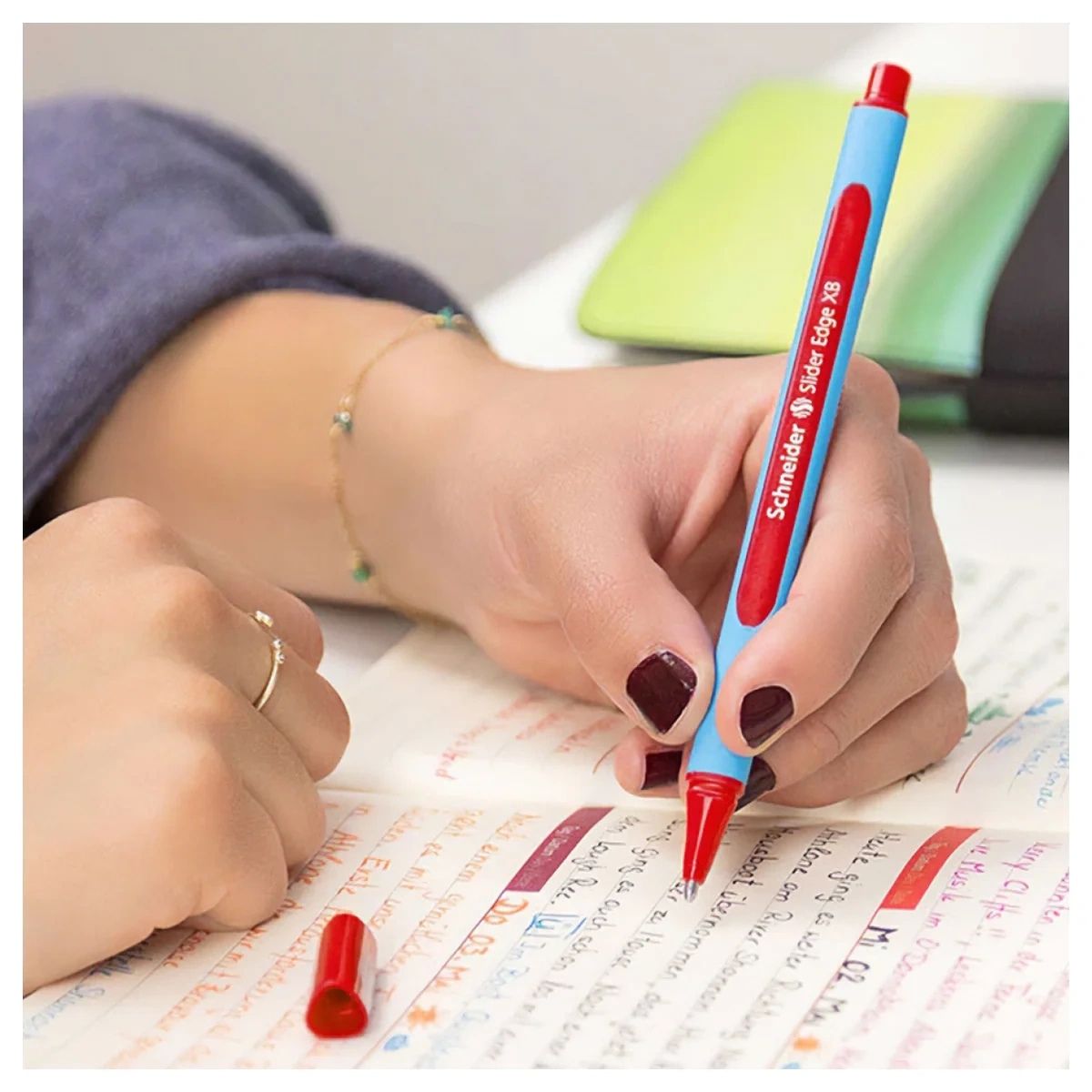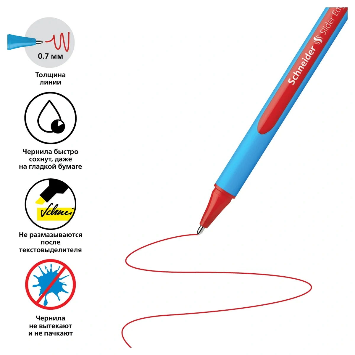 Шариковая ручка Schneider Slider Edge XB с эргономичным трехгранным прорезиненным корпусом. Диаметр пишущего узла ручки составляет 1,4 мм, толщина линии письма – 0,7 мм. Длина письма может достигать 2000 метров! Ручка изготовлена с использованием запатентованной технологии Viscoglide® для необычайно легкого и скользящего письма. Цвет элементов голубого корпуса соответствует красному цвету чернил. Письменные принадлежности Schneider разрабатываются и производятся только в Германии.