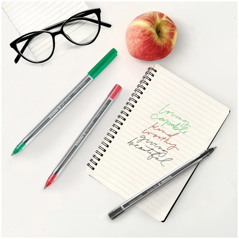 Письменные принадлежности Schneider разрабатываются и производятся только в Германии, их отличают функциональный дизайн, безупречное качество, надежность и экологичность. Пластиковый дисплей содержит шариковые ручки следующих цветов: толщина линии F - 25 синих, 15 черных, 10 красных, толщина линии M - 80 синих, 30 черных, 20 красных, 10 зеленых. Одноразовые шариковые ручки Tops 505 пишут в 2 раза дольше других хороших ручек. Длина непрерывной линии - до 3 500/4 000 метров в зависимости от толщины линии письма. Сделано в Германии!
