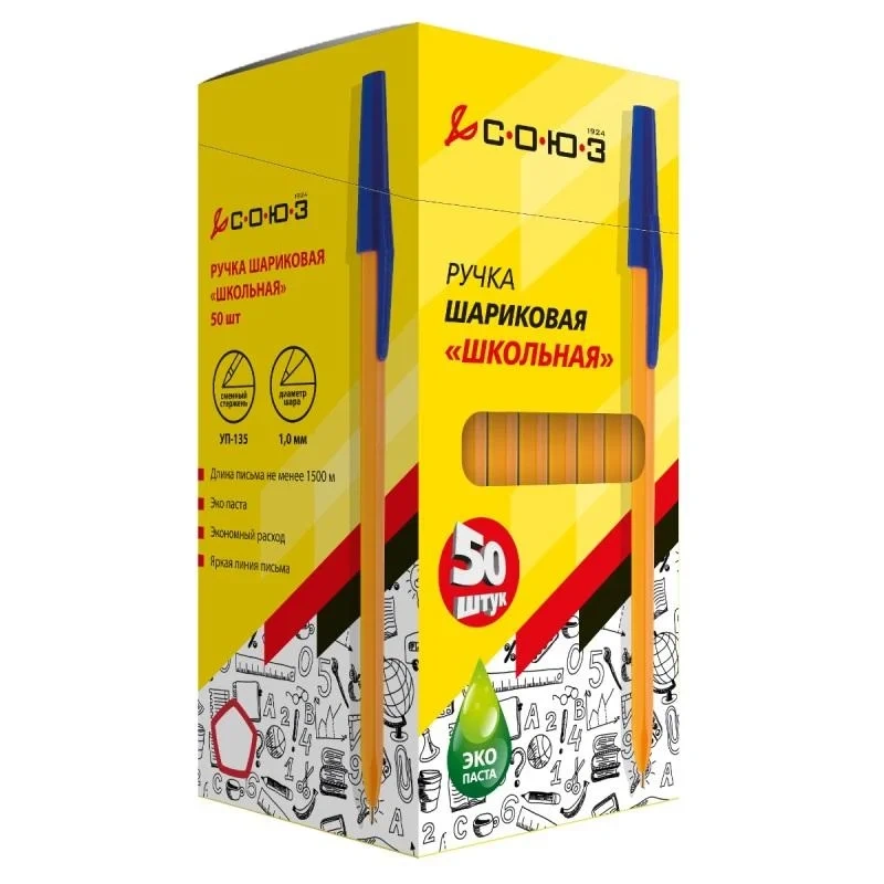 Шариковая ручка Союз Школьник синяя, 1мм, оранжевый корпус