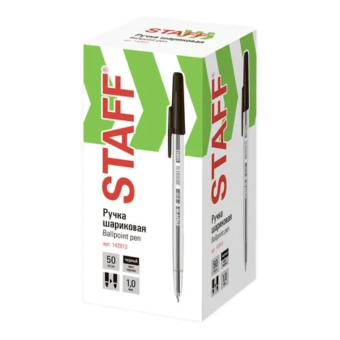 Шариковая ручка Staff черная, 0.5мм, прозрачный корпус