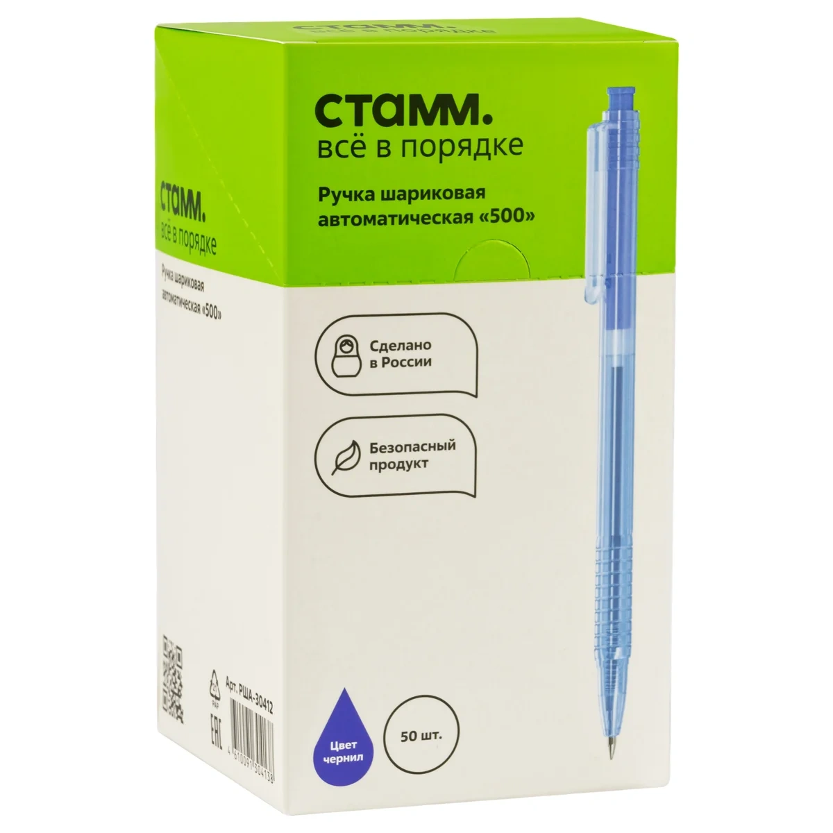 Шариковая ручка автоматическая Стамм 500 синяя, 0.7мм, тонированный корпус