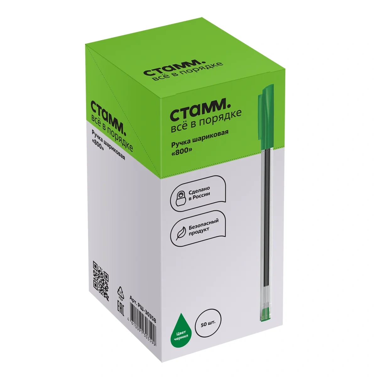Шариковая ручка Стамм 800 зеленая, 0.7мм, одноразовая