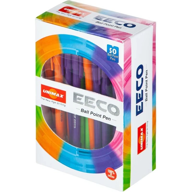 Одноразовая шариковая Unomax (Unimax) Eeco ручка без лишних деталей в ярком корпусе. Ручка, созданная по революционным технологиям с использованием материалов высшего качества, обеспечивает мягкое и качественное письмо за счет использования чернил низкой вязкости Visco Fluid Ink на масляной основе. Пишущий узел ручки оставляет тонкую и четкую линию толщиной 0,5 мм, не царапает бумагу. Чернила устойчивы к выгоранию и размытию водой, не замерзают при низкой температуре (до — 18 °С). Высокое качество письма без помарок и простота дизайна великолепно сочетаются в этой ручке. За счет особого расположения шарика пишущего узла ручка идеально подходит как для праворуких людей, так и для леворуких. Цвета корпуса в ассортименте. Сочетание уникальных технологий производства чернил и пишущего узла позволяет писать на 20% дольше без пропусков и помарок при минимальном давлении на ручку.